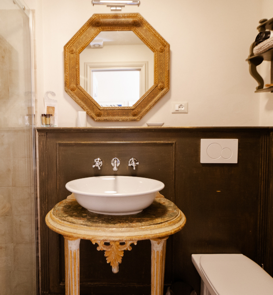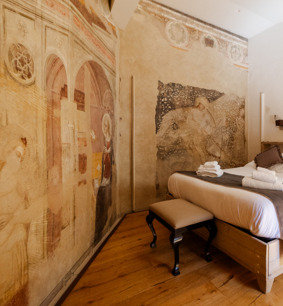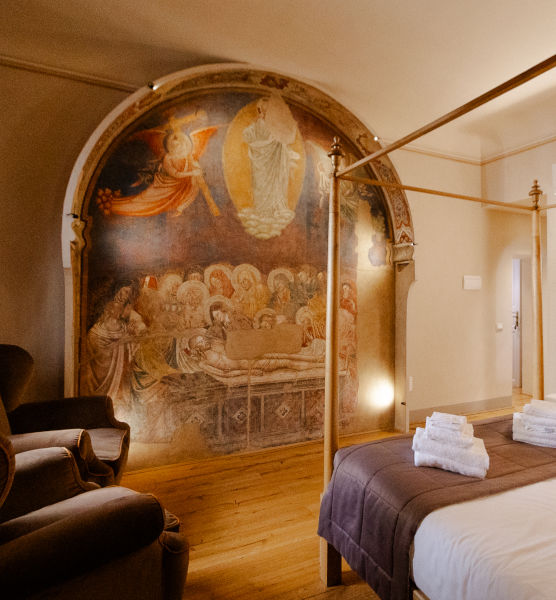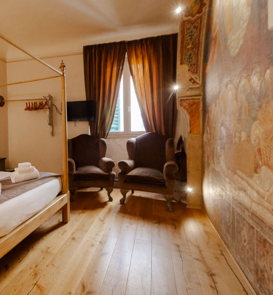 Il fiore all’occhiello del nostro B&B racchiude parte della storia della città di Firenze. La nostra suite occupa il loggiato trecentesco dello Spedale di San Pier Novello. Superfluo dire che il nome dell’ambiente deriva dalla presenza al suo interno degli affreschi della Scuola di Andrea Orcagna risalenti all'ultimo ventennio del XIV secolo. Uno di questi mette in scena l'Annunciazione, mentre l’altro rappresenta la leggenda di San Giorgio e il drago. Se avete sempre desiderato dormire in un museo questa è la vostra suite. Questa camera può ospitare comodamente 3 persone. Composta da due stanze attigue: una camera matrimoniale e un salottino con divano letto, per un totale di ben 26 mq più il bagno. Completa gli ambienti un'ampia terrazza privata dove è possibile fare colazione.