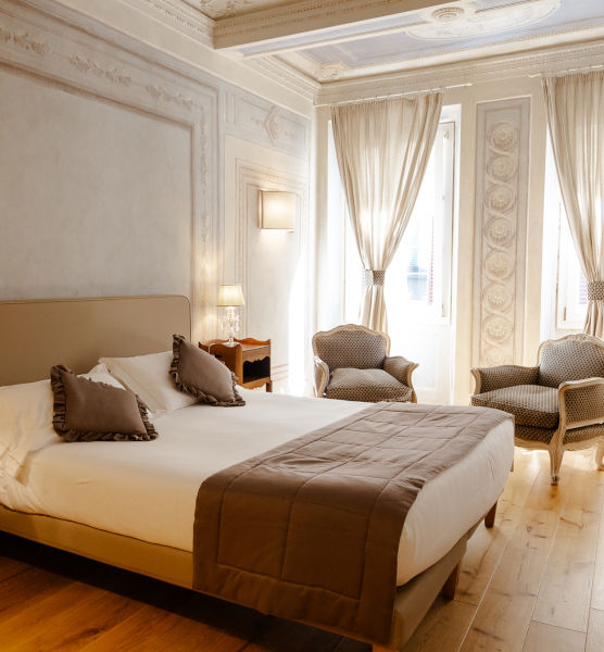 La camera Stucchi è una matrimoniale che fa parte della zona settecentesca della struttura. Le decorazioni in gesso e le raffinate pitture, che incorniciano soffitto a stanza, danno il nome alla camera. Un arco, posto al centro dell’ampia stanza, di ben 22mq più il bagno, conferisce particolare eleganza architettonica e recita un verso del cantico “Nunc dimittis” del Vangelo secondo Luca: “custodi nos dormientes”. Il letto matrimoniale è all'occorrenza divisibile per uso singolo.